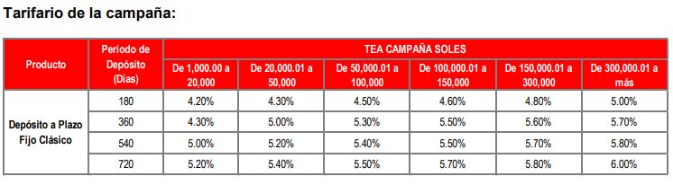 Condiciones y Restricciones aplicables:Para la Campaña de Depósito a Plazo Fijo Clásico, aplican las condiciones y restricciones que se detallan a continuación:
